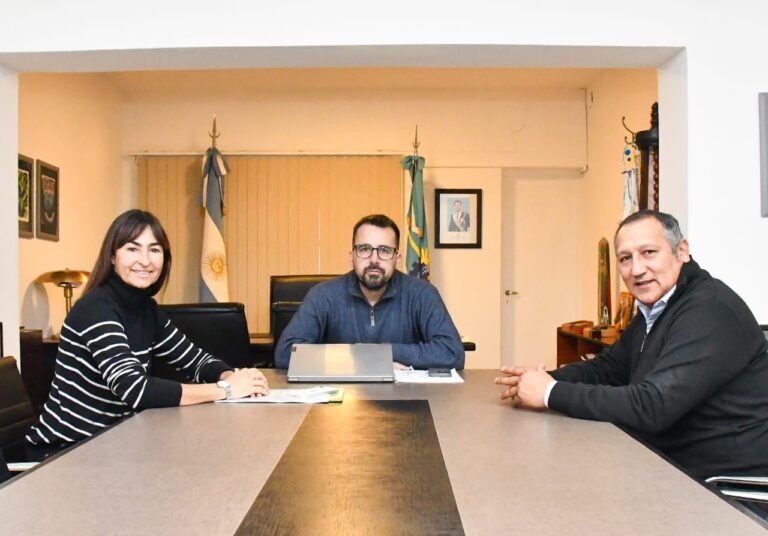 El intendente Matías Taccetta y la directora de Desarrollo Productivo y Emprendedurismo, Paula Botto, mantuvieron un encuentro de trabajo con Walter Gómez, representante de un viñedo y bodega de espumantes, en el que se abordó el avance en la radicación de esta nueva inversión privada en Esquel.